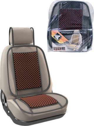 Накидка на сиденье NOVA BRIGHT-FUSION массажная, сетчатая, с подголовником (деревянные вставки, темная) (131х51см) 46861