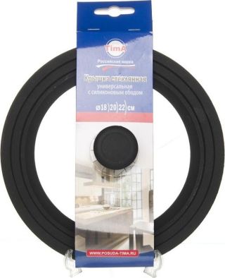 Крышка стеклян. с силикон/обод на 3 размера черная TIMA Крышка стеклян. с силикон/обод на 3 размера 18-20-22 черная 48182022BL