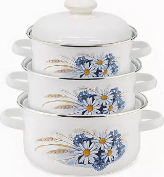 Набор посуды ЛЫСЬВА 124АП2/4 эмал "Ромашковое поле"