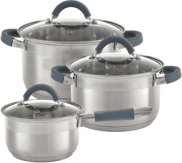 Набор посуды WEBBER BE-617/6 Набор посуды из нерж.стали 6 пр. 2,9л, 5,1л, 6,6л со стеклянными крышками