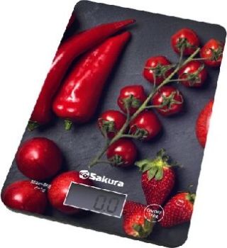 Весы кухонные SAKURA SA-6083RW красный/белый