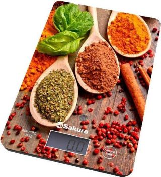 Весы кухонные SAKURA SA-6077DS темн. дерево специи