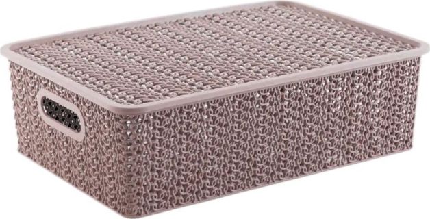 Корзина для хранения VIOLET Вязь 7,5л с крышкой розовый нюд 532111