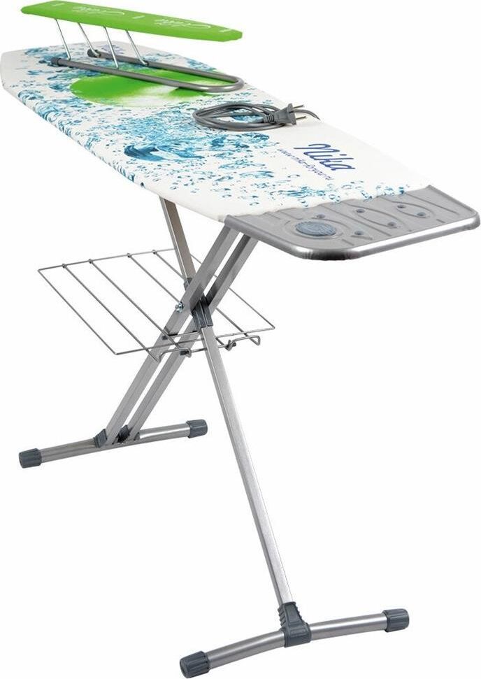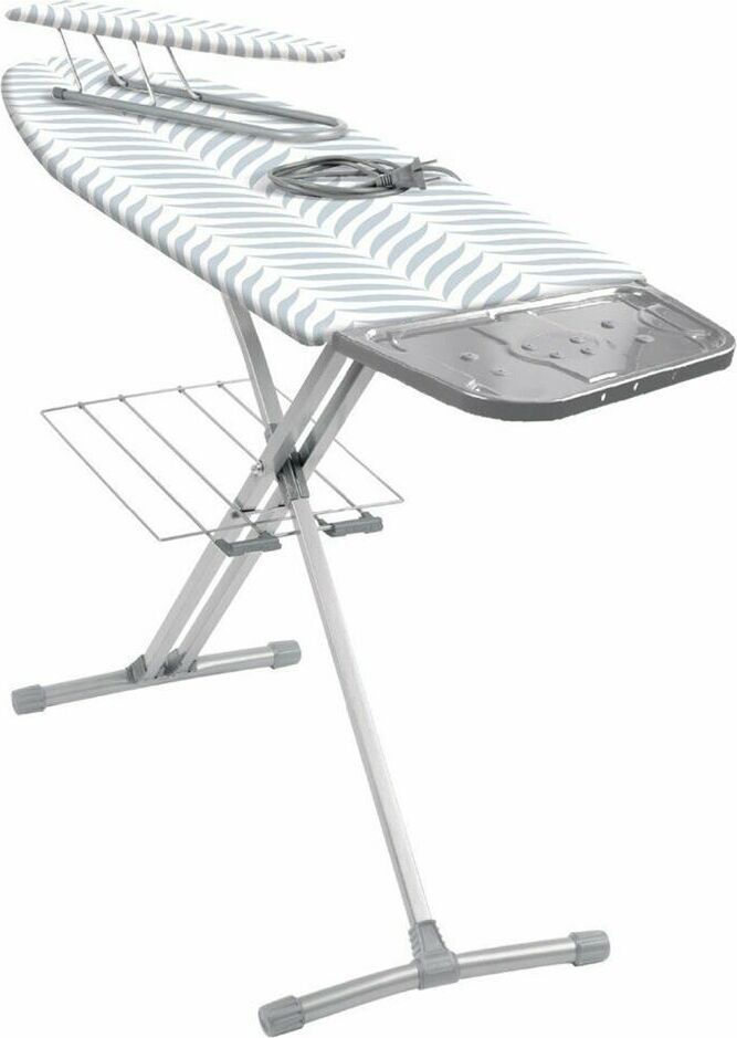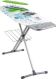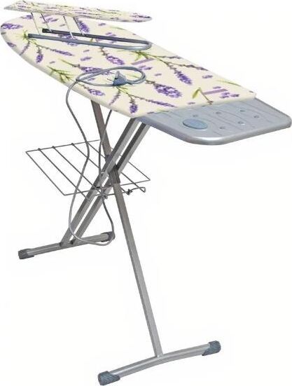 Гладильная поверхность -фанера (1225х400мм) плавно регулируемая высота до 90см, EUROподставка под утюг с термосиликоном, переносной подрукавник, электросоединитель 2,2м, розетка, полка для белья, материал чехла-хлопок, max нагрузка на глад.поверхность 25кг.,вес изделия-8,4кг. Индивидуальная термоупаковка