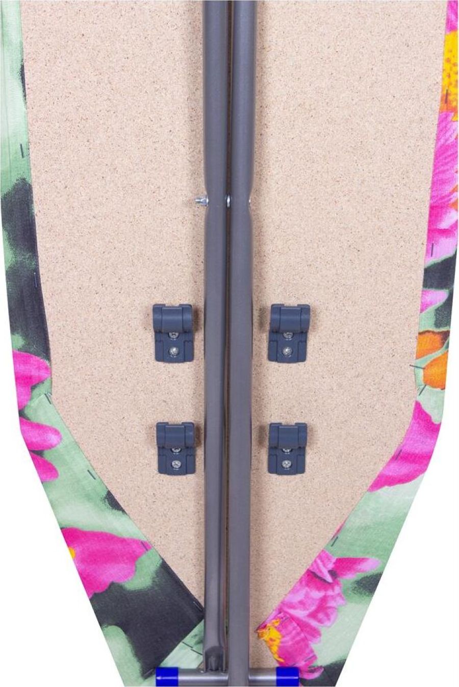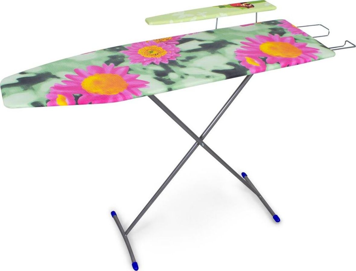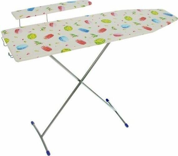 Гладильная поверхность -ДСП (1220х345мм), два положения высоты h-70, h-80см, выдвижная подставка под утюг, съемный подрукавник, материал чехла-хлопок, max нагрузка на глад.поверхность 10кг.,вес изделия- 4,52кг. Индивидуальная термоупаковка.