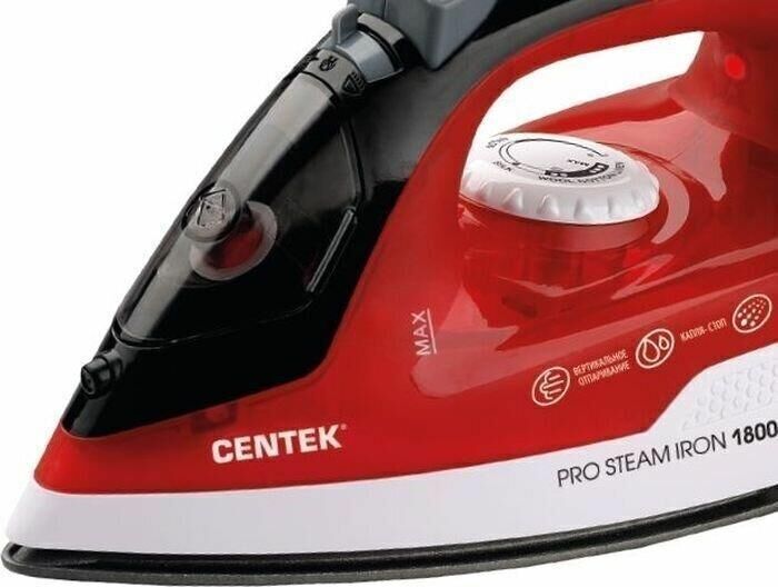 Утюг Centek CT-2347 красный (красный) 1800Вт, антипригар. подошва, паровой удар, самоочистка, 200мл