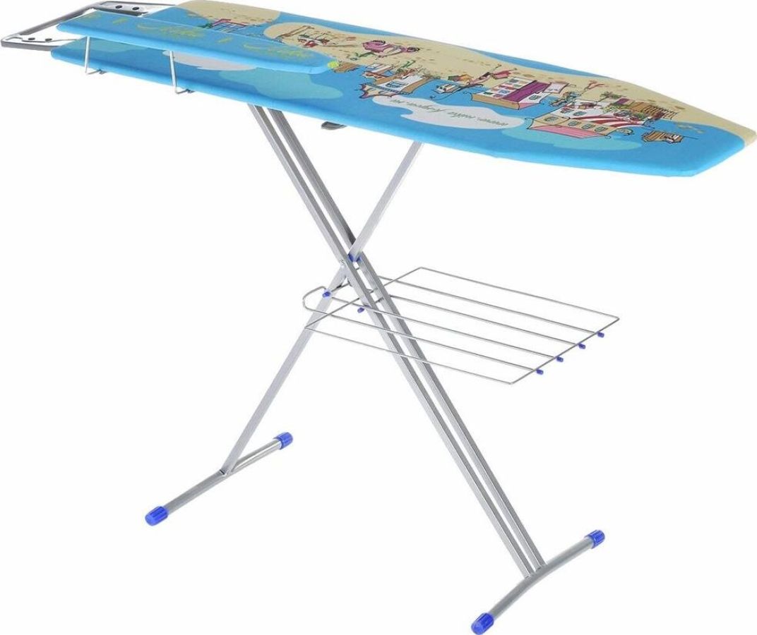 Комплектация: полка для белья, подставка для утюга, гладильный рукав, встроенная розетка для утюга