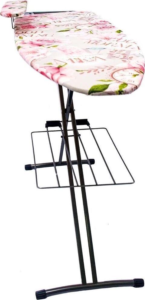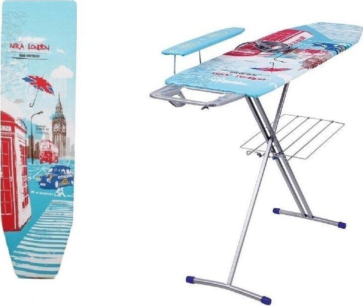 Гладильная поверхность -фанера (1225х380мм) плавно регулируемая высота до 90 см, EUROподставка под утюг с термосиликоном, съемный подрукавник, электросоединитель 2,2 м, розетка, полка для белья, материал чехла-хлопок, max нагрузка на глад.поверхность 15кг, вес изделия-7,3кг. Индивидуальная термоупаковка.