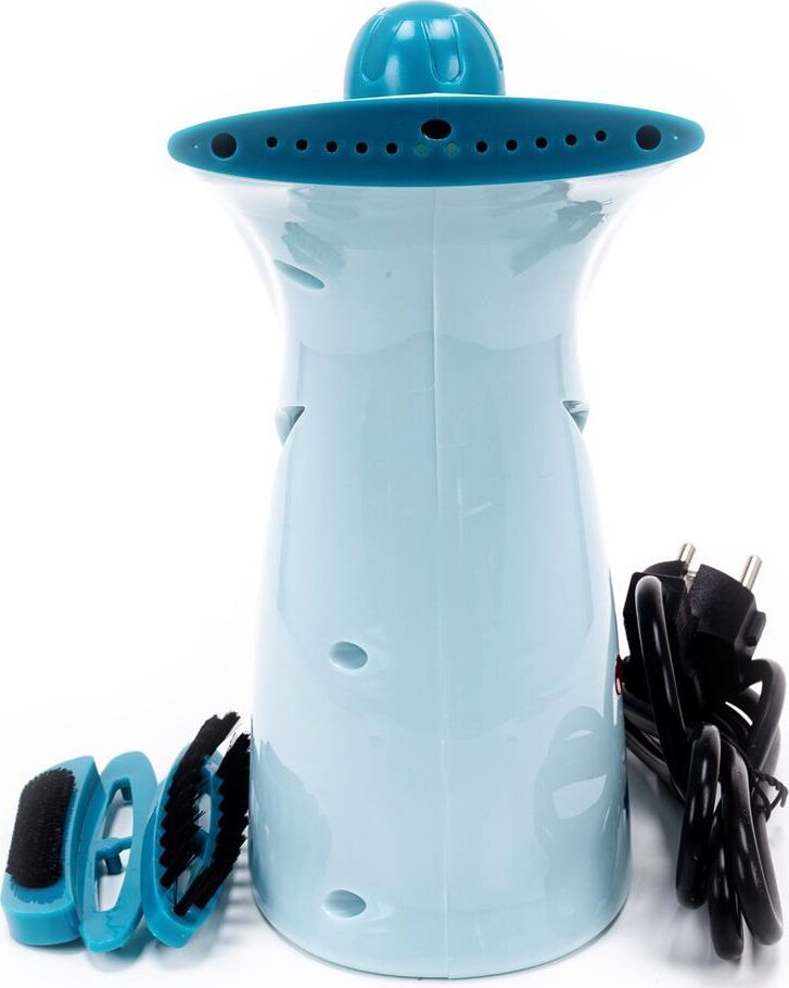 Макс. мощность 800 Вт. Объем резервуара 200 мл. Готовность пара 90 сек. Время непрерывной работы 25 мин. Подача пара 15±5 г/мин. Максимальная температура пара 100°С. Мощный и быстрый поток пара. Быстро удаляет складки на одежде. Два режима подачи пара. Корпус из высококачественного пластика. Съемная универсальная щетка. Съемная щётка для удаления ворсинок. Удобная эргономичная ручка. Компактный размер. Защита от перегрева. Цвет: серо-голубой.