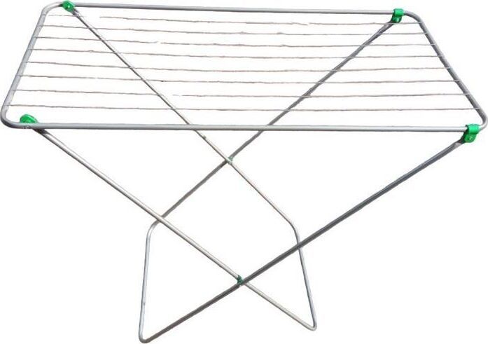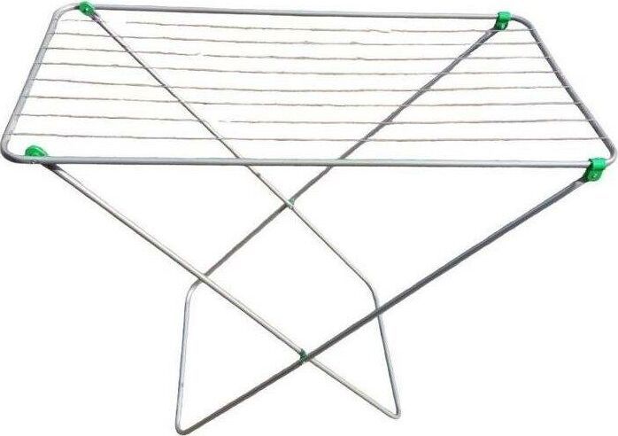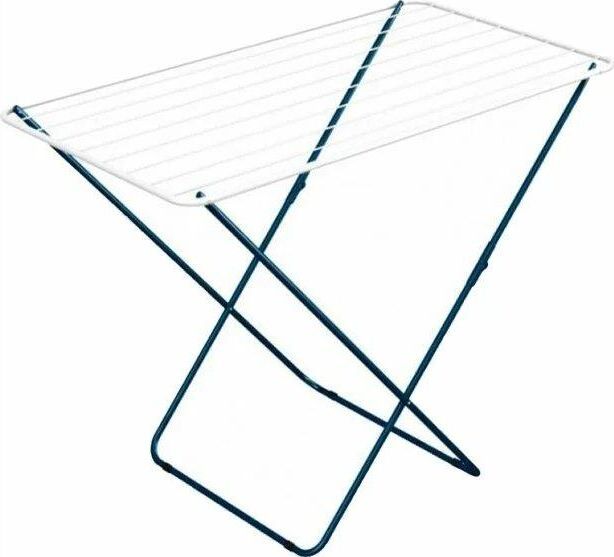 Компактная напольная сушилка. Пластиковые заглушки, препятствующие царапанию поверхности пола. Пластиковый механизм для фиксации сушилки в удобной позиции. Рабочая длина 10 м. Макс. нагрузка 20 кг. Вес 2,0 кг.