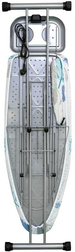 Комплектация: встроенная розетка для утюга, полка для белья, кронштейн для провода, подставка для утюга, Гладильная доска, упаковка , Вид выпуска товара: Фабричное производство , Наличие подставки под утюг: Да , Подключение к электросети: Да , Полка для белья: Да