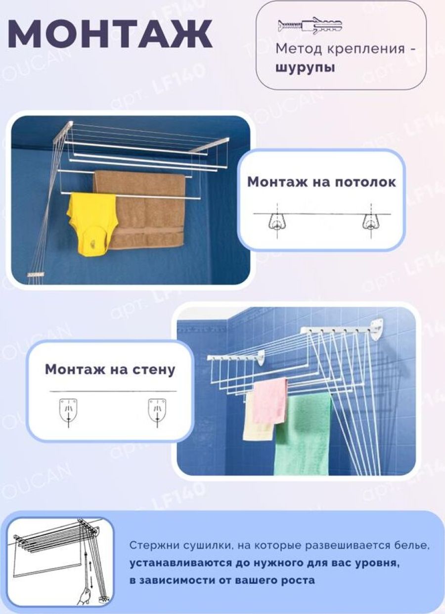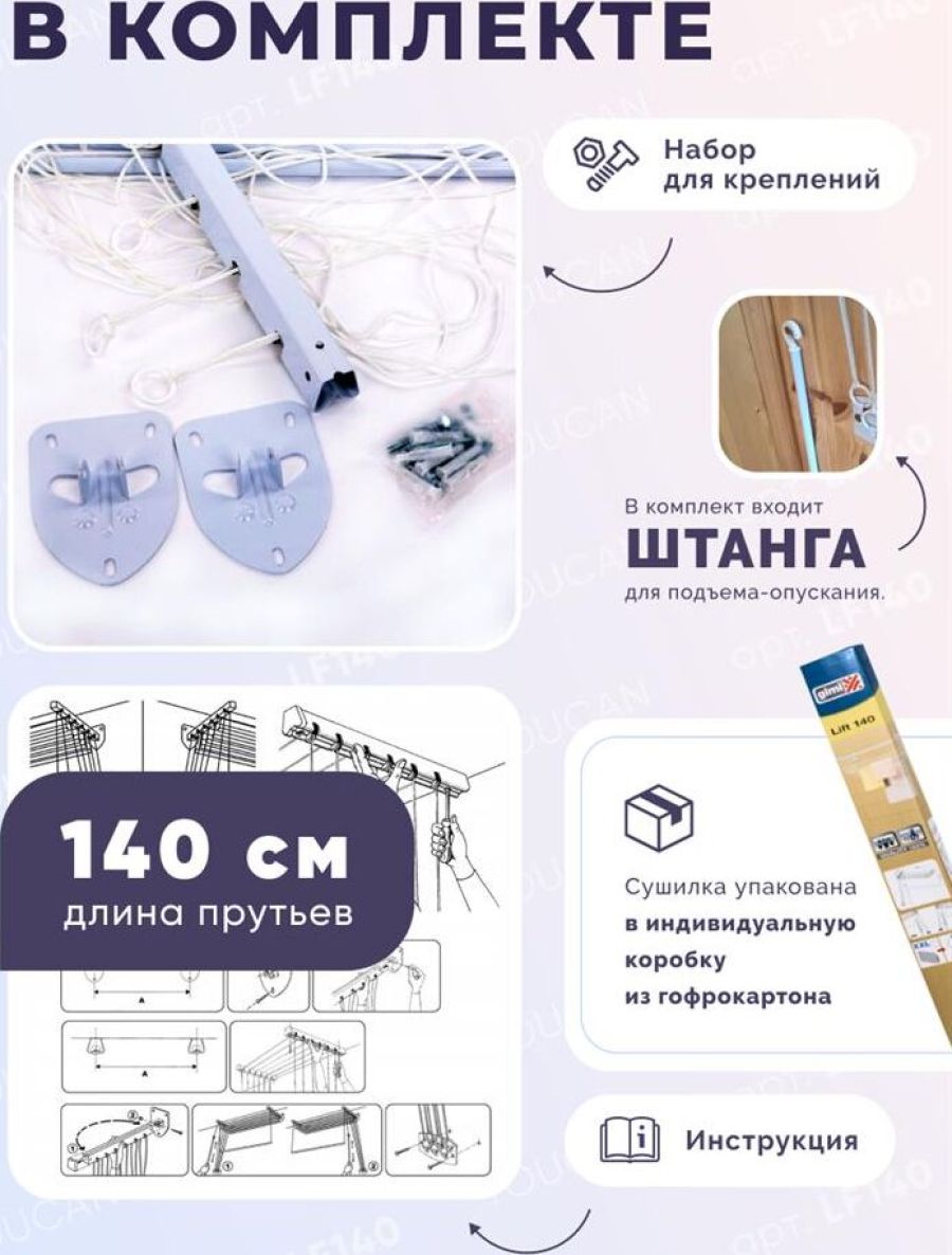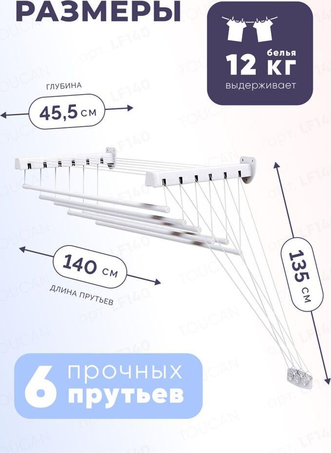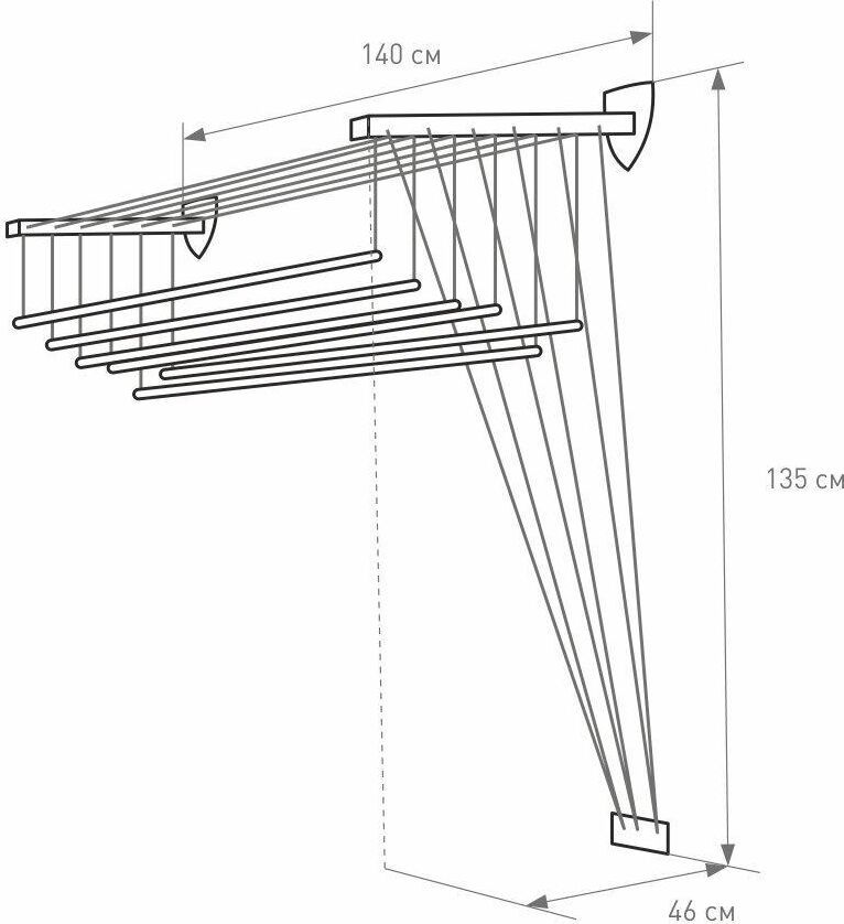 Стальная с полимерным покрытием. Крепление на стену или потолок. Рабочая длина 8,4 м. Максимальная нагрузка 15 кг. Вес 3,19 кг.