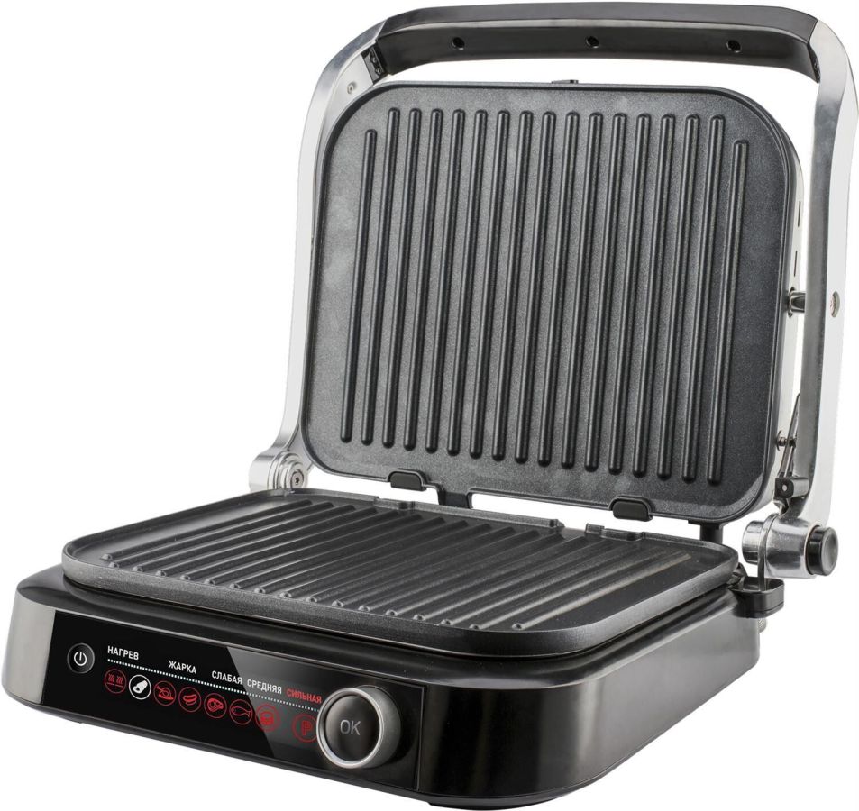 Контактный гриль Номинальное напряжение: 220-240 В, 50/60 Гц Управление: электронное Кол-во автопрограмм: 7 Ручной режим: да Автоматическое определение толщины стейка и времени приготовления: да Температура нагрева: 70-250°С Рабочие панели: съемные (2 шт.)