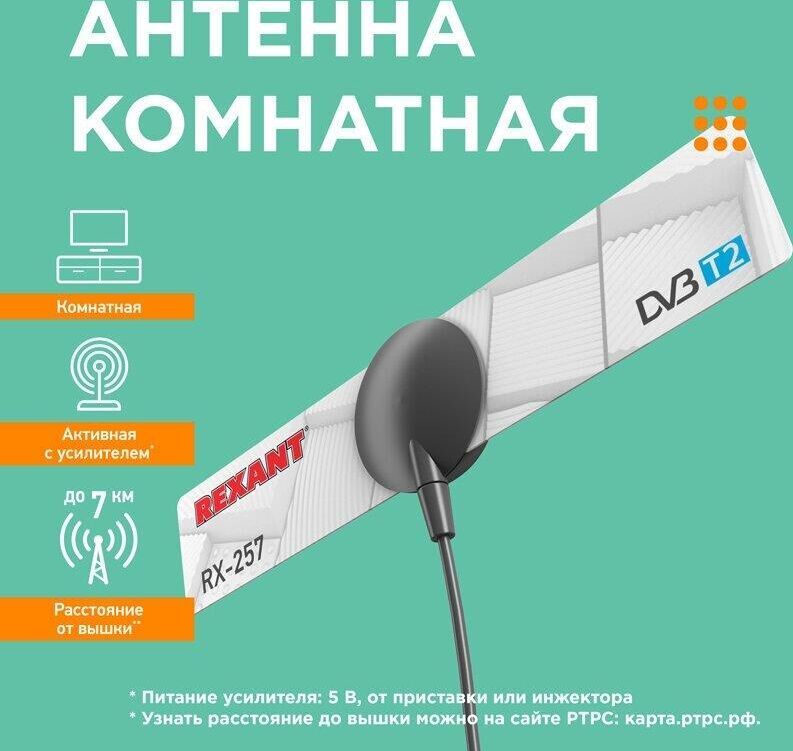 Антенна комнатной установки, предназначена для приема цифрового эфирного ТВ вещания в стандарте DVB-T2. Использутся для приема цифрового эфирного вещания на современных телевизорах или комбинированных ресиверах, укомплектованных тюнером стандарта DVB-T2. Коэффициент усиления: 3 дБи. Волновое сопротивление: 75 Ом. Кабель: 1,2 м. Тип подключения: ТВ штекер. Масса: 0,1 кг. Размеры в сборе: 210х40х20 мм. Тип упаковки: коробка с держателем.