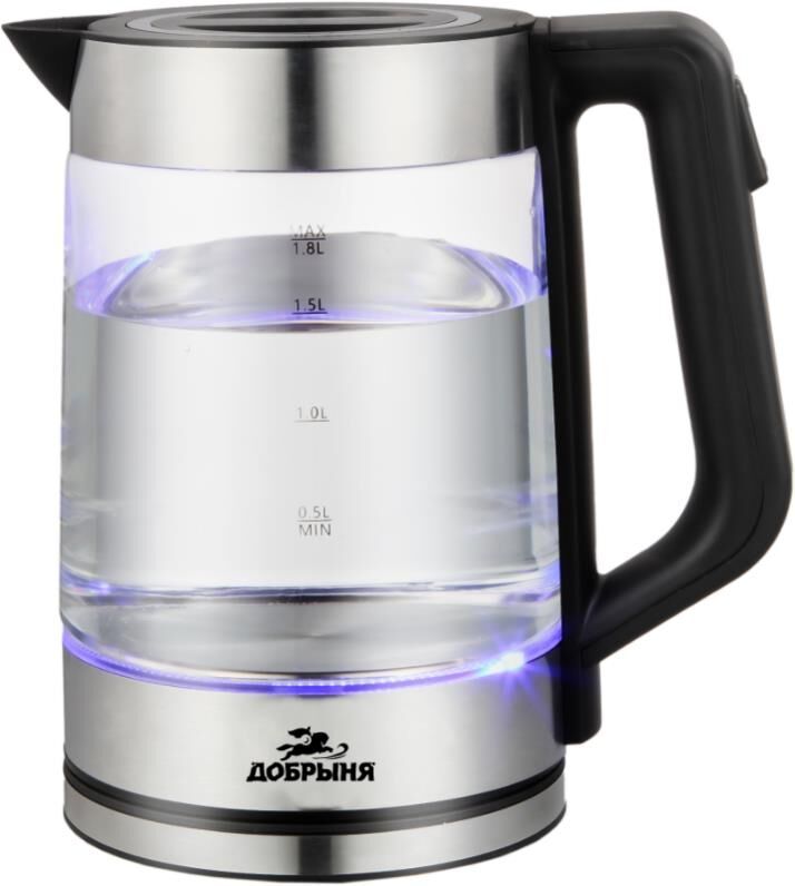 -Мощность: 1800-2200 Вт. -Автоотключение при закипании воды -Светодиодная подсветка -Шкала уровня -Возможность поворота на 360 градусов -Закрытый нагревательный элемент -Сетевой индикатор работы -Место для хранения шнура -Напряжение 230 Вт, 50 Гц.