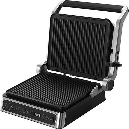 3 в 1 гриль, барбекю, духовка / Мощность 2000 Вт / Съемные панели, легкая очистка / 6 автоматических программ / Максимальная температура нагрева 230 градусов, оптимальная температра для стейка / Режим <<барбекю>> рабочие поверхности раскрывается на 180 градусов / Регулятор высоты крышки позволяет добиться оптимальной степени прижатия панелей для идеальной прожарки / 4 степени прожарки RARE, MED RARE, MEDIUM, WELL DONE / Электронная панель управления / Съемные панели с встроенными нагревательными элементами
