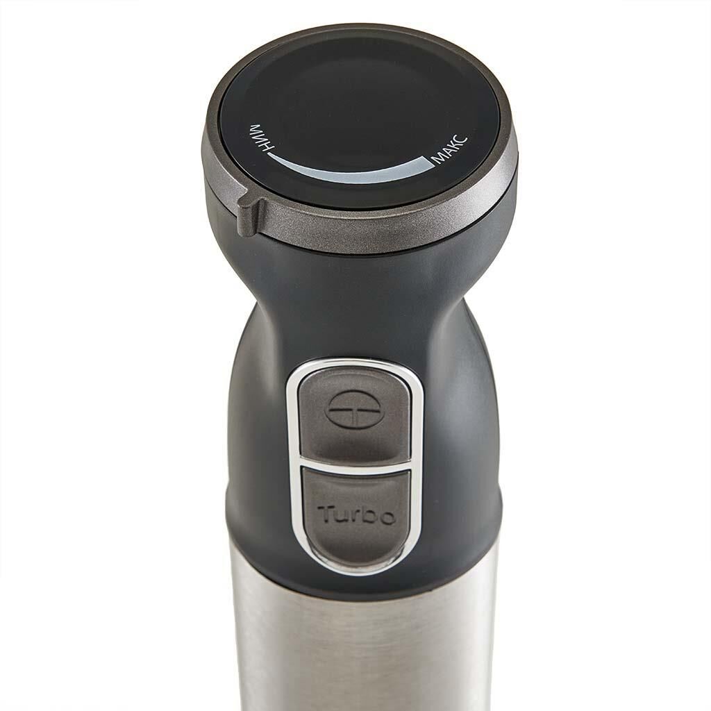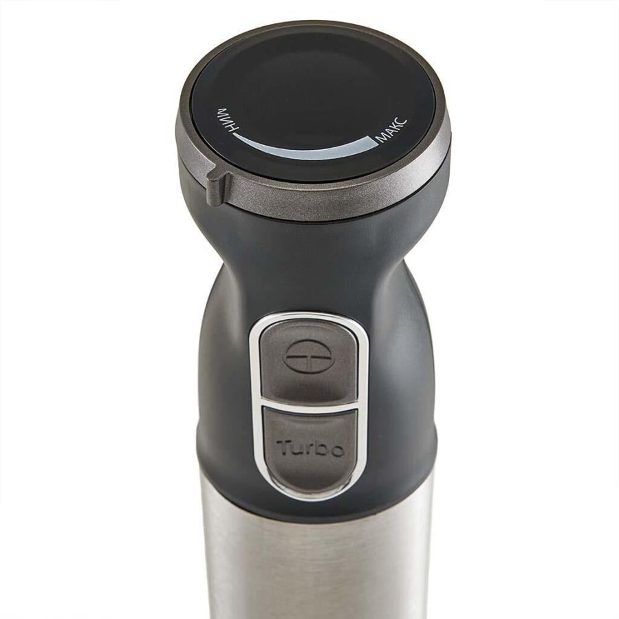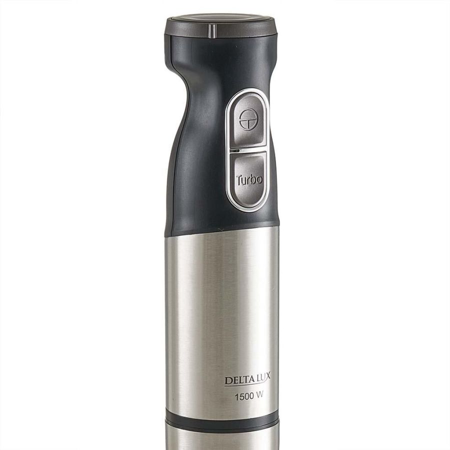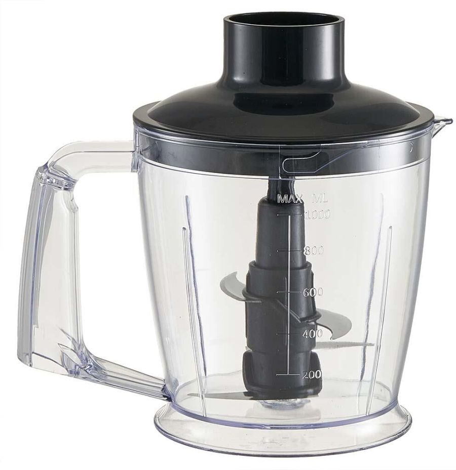 Параметры Максимальная мощность 1500 Вт Номинальная потребляемая мощность 1000 Вт Объем чаши измельчителя 1000 мл Объем мерного стакана 700 мл Описание Блендер электрический представляет собой многофункциональное устройство для смешивания, измельчения и взбивания продуктов и жидкостей в бытовых и аналогичных условиях Цвет: черный/нержавеющая сталь Двойной нож из нержавеющей стали Три сменные насадки: - насадка для смешивания - венчик для взбивания - измельчитель Мерный стакан Плавная регулировка скорости Режим «ТУРБО» Упаковка: цветная коробка