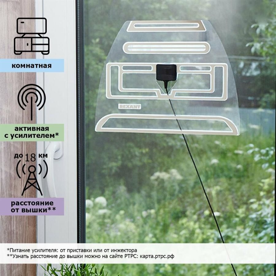 Антенна активная (со встроенным усилителем), комнатной установки, предназначена для приема цифрового эфирного ТВ вещания в стандарте DVB-T2. Использутся для приема цифрового эфирного вещания на современных телевизорах или комбинированных ресиверах, укомплектованных тюнером стандарта DVB-T2. Коэффициент усиления: 37 дБи. Волновое сопротивление: 75 Ом. Кабель: 2 м. Тип подключения: ТВ штекер. Питание усилителя: 5 В, от USB разъема (входит в комплект поставки). Масса: 0,35 кг. Размеры в сборе: 320х240х120 мм. Тип упаковки: коробка, картон.