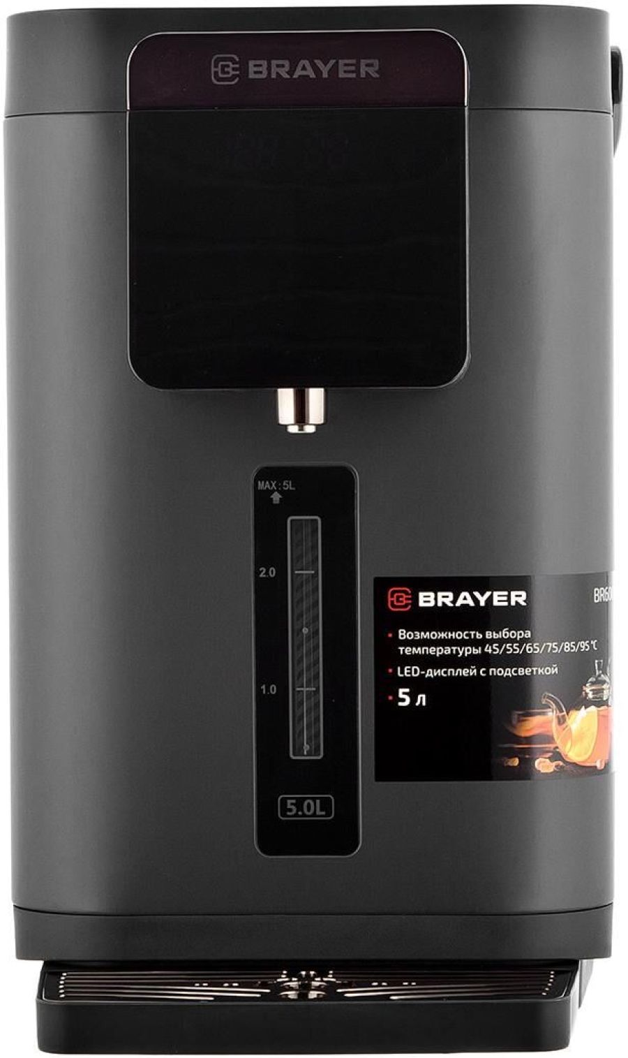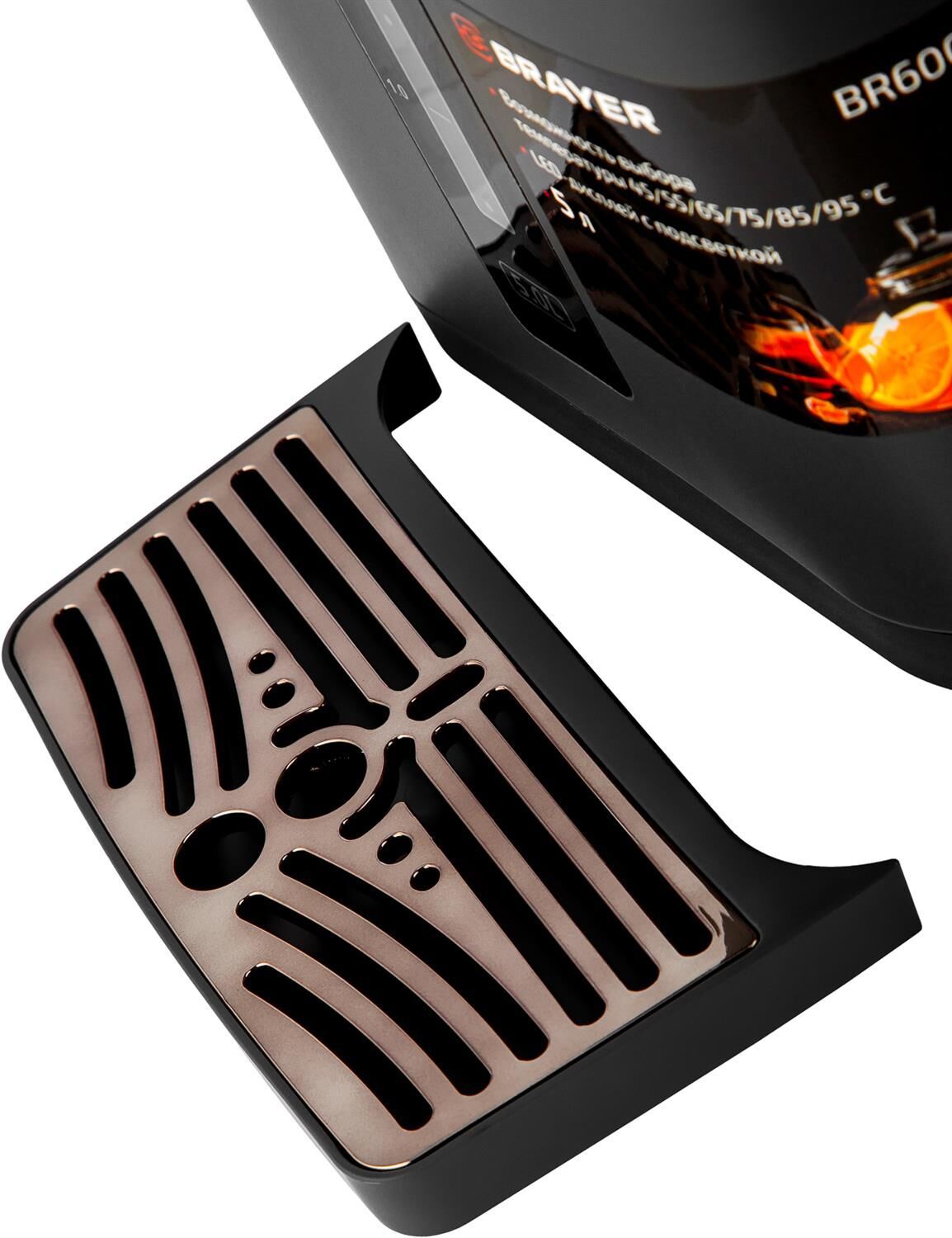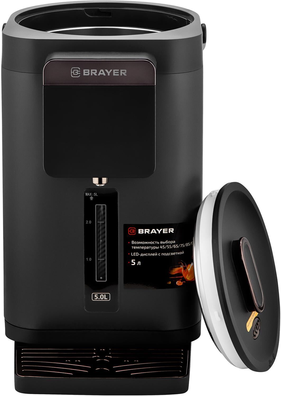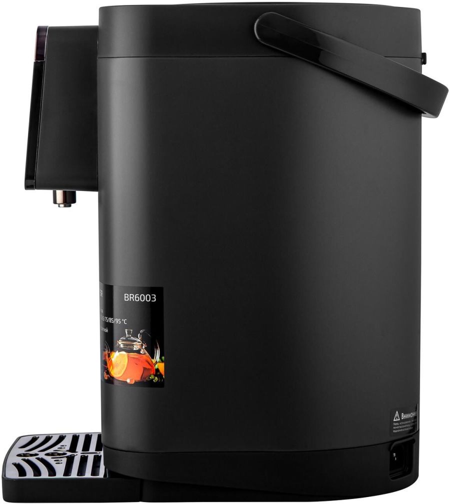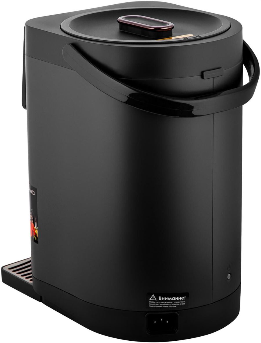 Максимальная мощность 1450 Вт Максимальный объем 5 л Подача воды с помощью автоматической помпы Поддержание температуры воды для разных напитков (45°/55°/65°/75°/85°/95°С) Функция повторного кипячения Функция поддержания температуры воды Сенсорное управление LED-дисплей Блокировка подачи воды Корпус из высококачественного металла Съёмный поддон для капель Автоотключение при отсутствии воды Электропитание 220-240 В, ~ 50-60 Гц