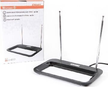 Антенна комнатная DVB-T2 и ДМВ+МВ пассивная Сигнал SPI 617 усы 1м кабель 3м Телевизионная комнатная антенна "Сигнал" SPI-617 для просмотра цифрового и аналогового телевидения выполнена из пластика. Данную антенну можно разместить в наиболее удобном месте в зависимости от уровня сигнала, потому как SPI-617 имеет удлиненные усы 100 сантиметров и кабель длиною 3 метра. Принимает сигнал в диапазонах МВ и ДМВ, DVB-T, DVB-T2. Частота приема сигнала МВ (87,5-230)MHz / ДМВ (470-862)MHz. Антенна по типу усиления пассивная. Есть возможность закрепить антенну на стене. Коэффициент усиления составляет 3-5dB.Рразмер антенны 210х130х15мм. В комплектацию входит: антенна "Сигнал" SPI-617, инструкция полностью на русском языке, гарантийный талон и красочная упаковка. Товар сертифицирован и имеет гарантию 6 месяцев.