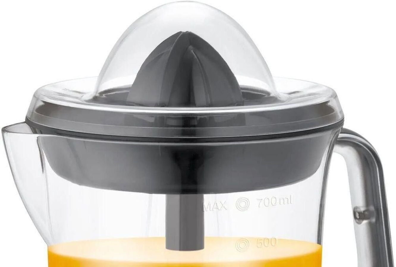 Цитрусовая соковыжималка. Мощность: 25 Вт, Количество скоростей: 2, Материал корпуса: пластик, Материал сетки: нержавеющая сталь, Прорезиненные ножки, Длина сетевого шнура: 100 см, Цвет: Черный/серебро