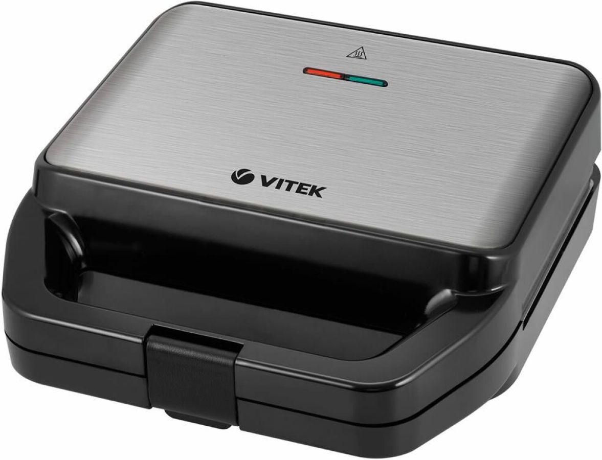 Вафельница. Мощность: 850 Вт, Антипригарное покрытие, Материал корпуса: термостойкий пластик и нержавеющая сталь, Индикатор готовности, Индикатор работы, Съемные панели: Сэндвичница, Вафельница, Гриль, Форма вафель: прямоугольник, Количество вафель: 2, Терморегулятор - нет, Электропитание: 220-240, Цвет: Серебро/черный