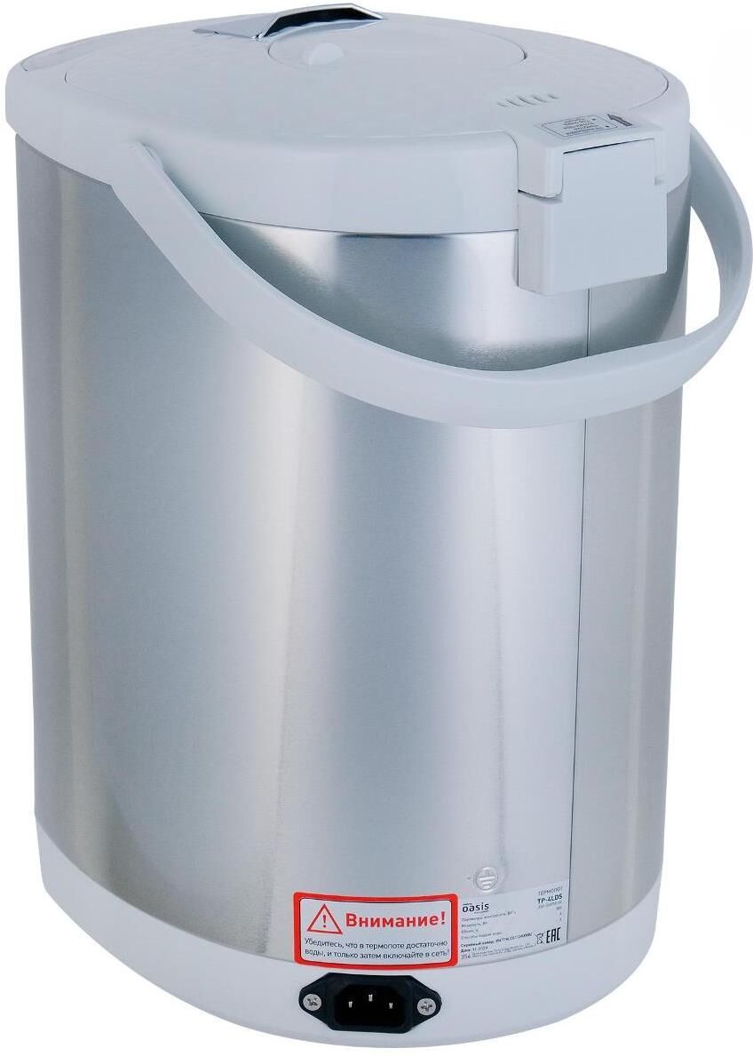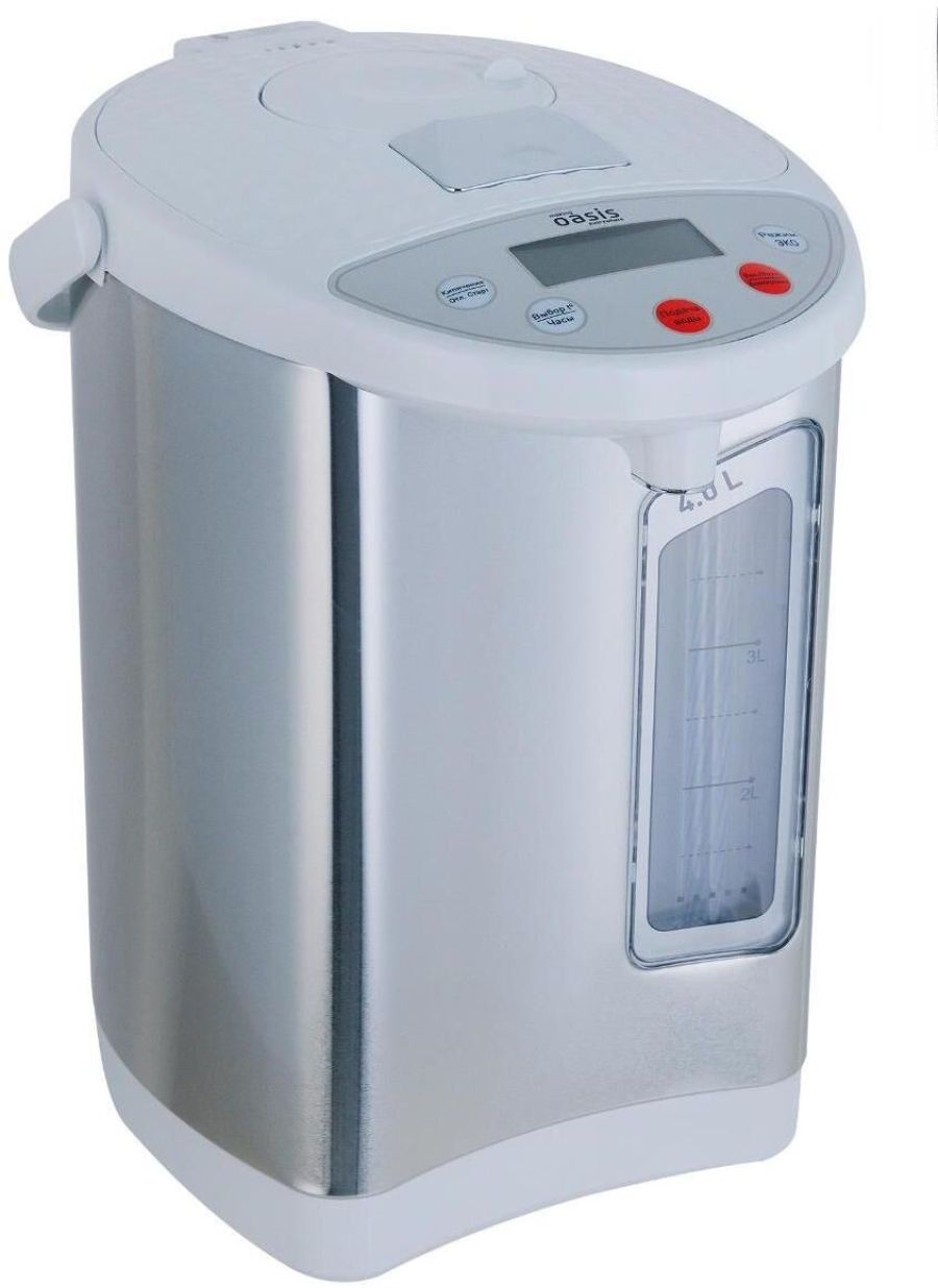 Объем, л 4 Способы подачи воды 3 Цвет стальной+белый Тип управления кнопочное Материал корпуса сталь+пластик Материал колбы нержавеющая сталь Диапазон температур, Сº 45, 55, 65, 75, 85, 98 Длина кабеля, см 75 Размер изделия, см 34×30,5×22,7 Вес нетто, кг 2,18