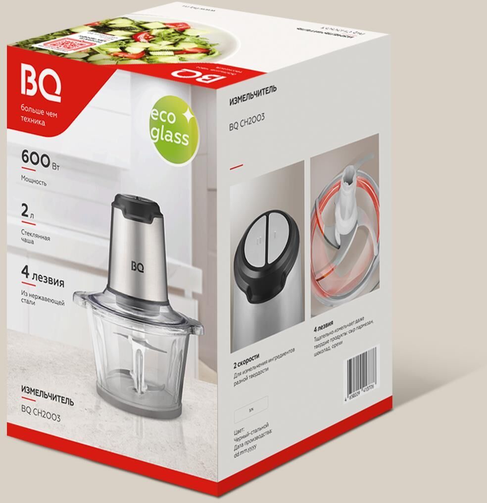 Мощность:600 Вт / Стеклянная чаша 2л /4 лезвия из нержавеющей стали, тщательно измельчает даже твердые продукты: сыр пармезан, шоколад, орехи / 2 скорости для измельчения ингредиентов разной твердости / Двойная защита двигателя, автоматическое отключение при перегреве и неправильной сборке обеспечивает длительный срок службы устройства / Легкая очистка, все съемные детали подходят для мытья в посудомоечной машине