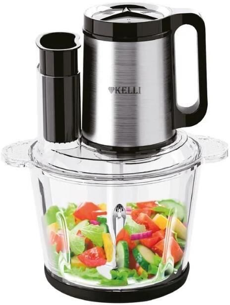 Чоппер-измельчитель 5в1 Мощность: 1500Вт Стеклянная чаша: 2,8л 3 скоростных режима Двухъярусный нож с 4-мя лезвиями Насадки: диск-терка двусторонняя, насадка для взбивания яиц, насадка для замешивания теста, насадка для очистки чеснока Противоскользящее основание Ножи из нержавеющей стали Механическое основание Сеть: 220-240В, 50Гц