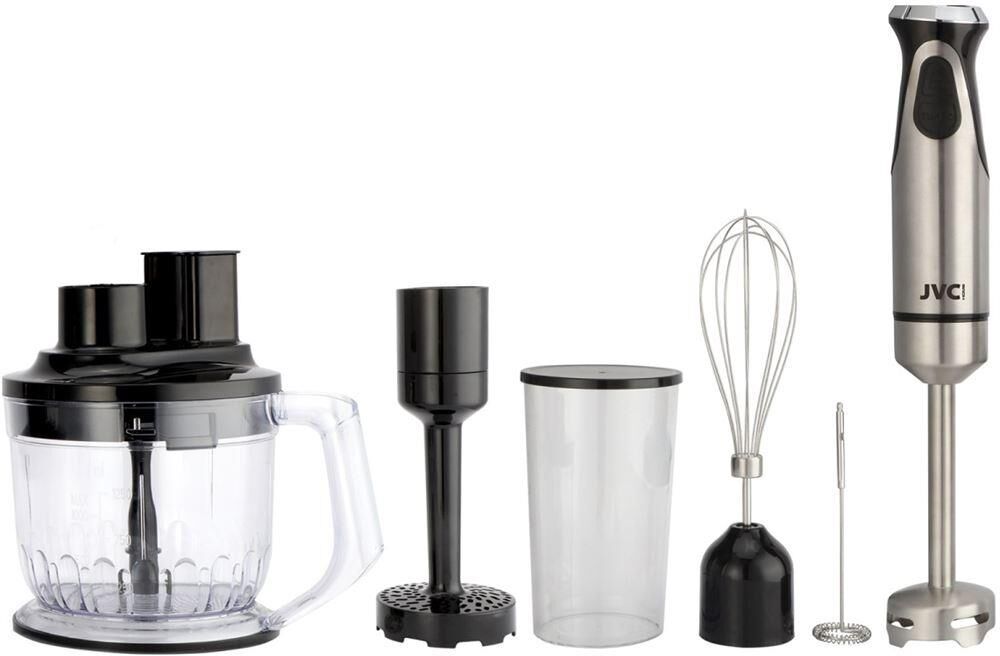 Многофункциональный блендер, двигатель постоянного тока, максимальная мощность 1500 ватт, защита двигателя от перегрева и перегрузок, 2 скорости( включая режим Турбо), бесступенчатая регулировка скорости: до 6 скоростей, усиленный нож из нержавеющей стали - 4 лепестка, кухонный комбайн для измельчения, терки и нарезки кубиками - 1250 мл, мерный стакан с крышкой - 700 мл, венчик для взбивания, насадка для приготовления картофельного пюре, вспениватель молока , длина кабеля 1 метр