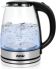 Объем чайника (Л); 1,8; Мощность (Вт); 1800-2000; Антискользящая база; Да; Тип нагревательного элемента; Закрытый; Отключение при отсутствии воды; Да; База с поворотным контактом; Да; Шкала уровня воды; Да; Цвет корпуса; черный; Материал корпуса; Закаленное стекло; LED-подсветка; Да; Хромированные вставки; Да