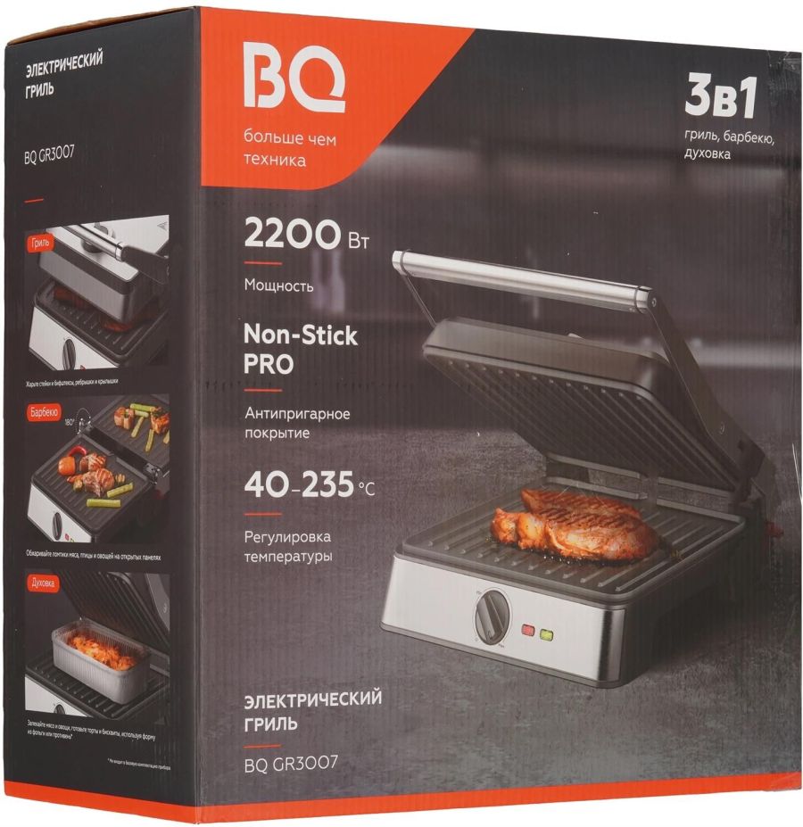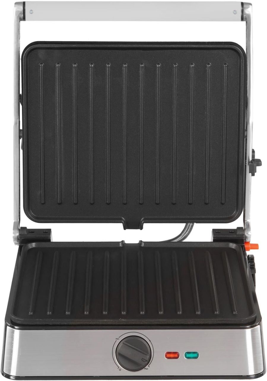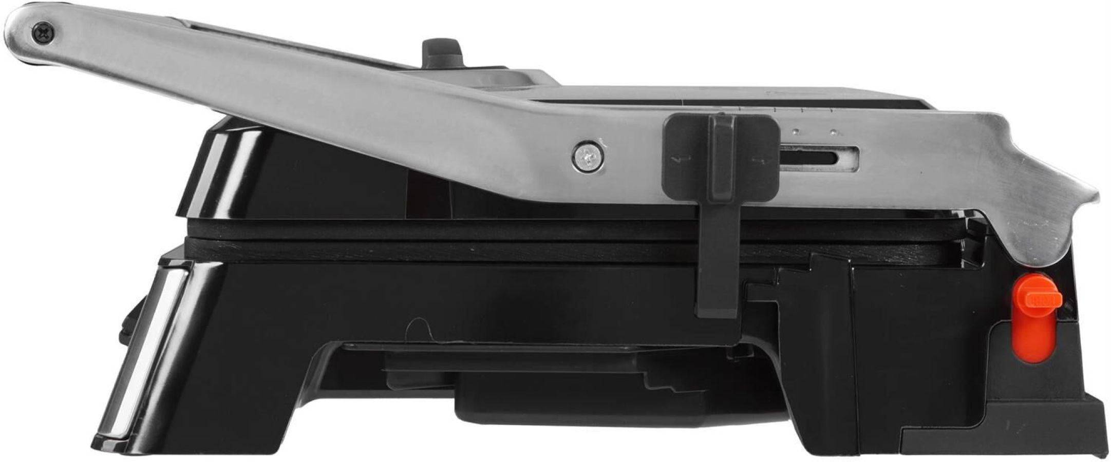 3 в 1: гриль, духовка, барбекю; мощность: 2200 Вт, тип управления: механическое, нагревательный элемент: нержавеющая сталь, регулировка температуры каждой панели, диапазон температур нагрева: 40-235 °С, материал корпуса: металл, бакелит, материал панелей: металл, антипригарное Non-Stick PRO, размер рабочей поверхности: 290 x 240 мм, количество панелей: 2, регулировка высоты, максимальный угол открытия крышки: 180°, индикатор нагрева. индикатор питания, съемный поддон для сбора масла/жира, длина шнура: 0.7 м, напряжение: 220-240 В, 50-60 Гц, защита от поражения электротоком: класс I