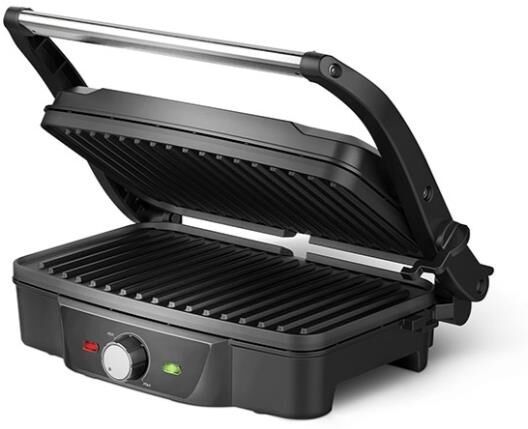 3 в 1: гриль, духовка, барбекю; мощность: 1600 Вт, тип управления: механическое, нагревательный элемент: нержавеющая сталь, регулировка температуры, диапазон температур нагрева: 40-230 °С, материал корпуса: металл, бакелит, материал панелей: металл, антипригарное NonStick PRO, размер рабочей поверхности: 280 x 170 мм, количество панелей: 2, регулировка высоты, максимальный угол открытия крышки: 180°, индикатор нагрева, индикатор питания, съемный поддон для сбора масла/жира, длина шнура: 0.7 м, напряжение: 220-240 В, 50-60 Гц, защита от поражения электротоком: класс I