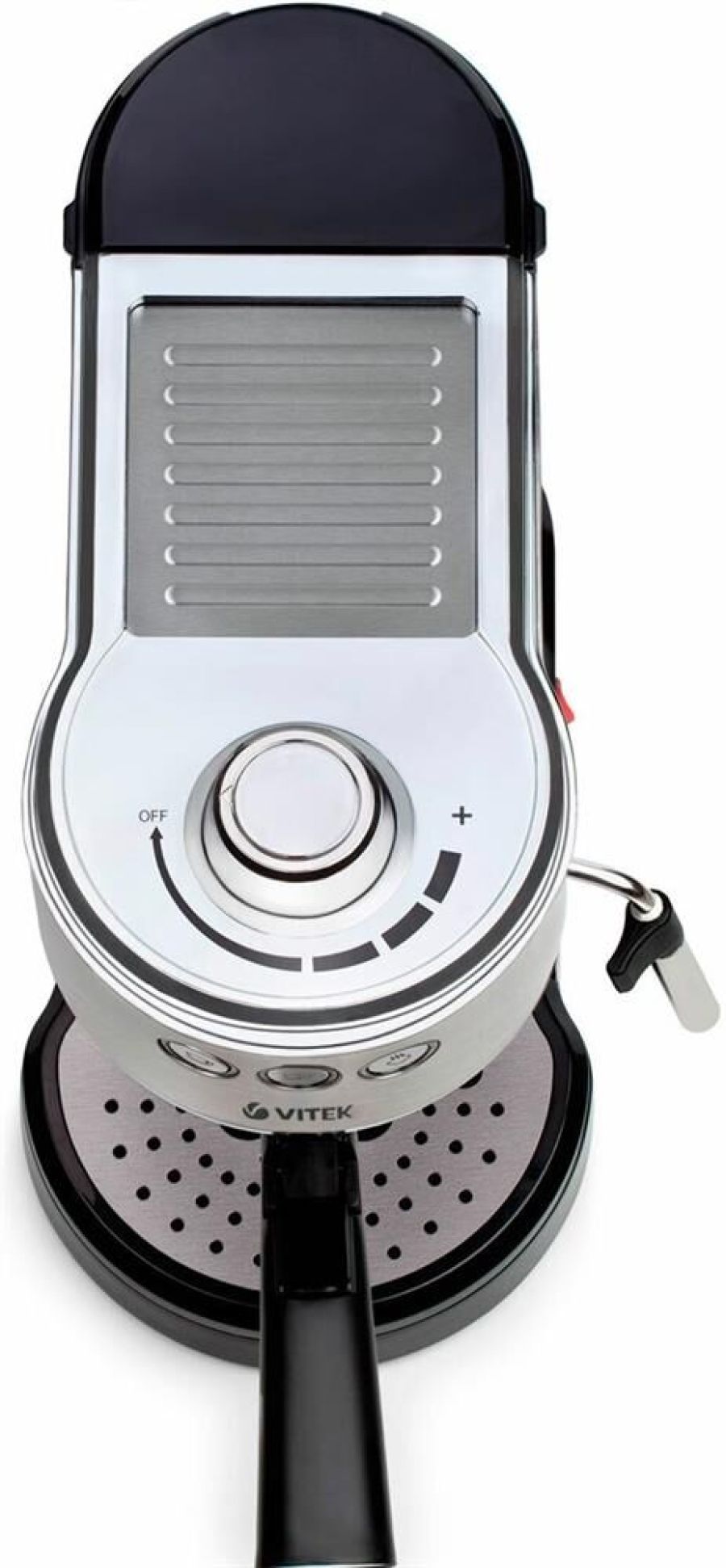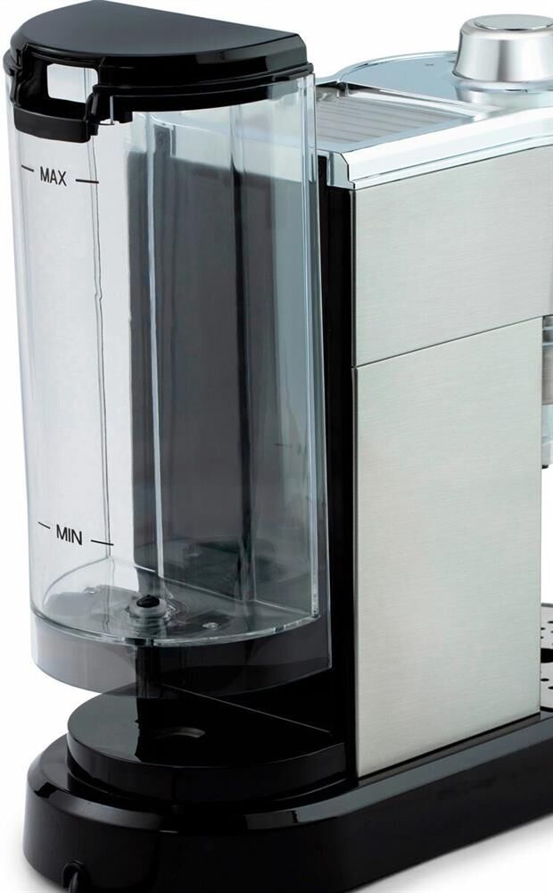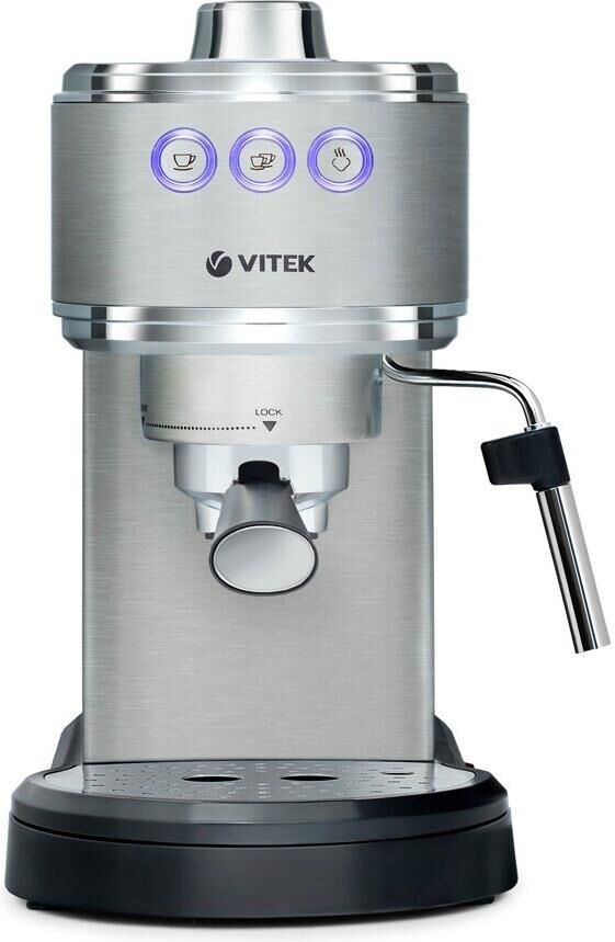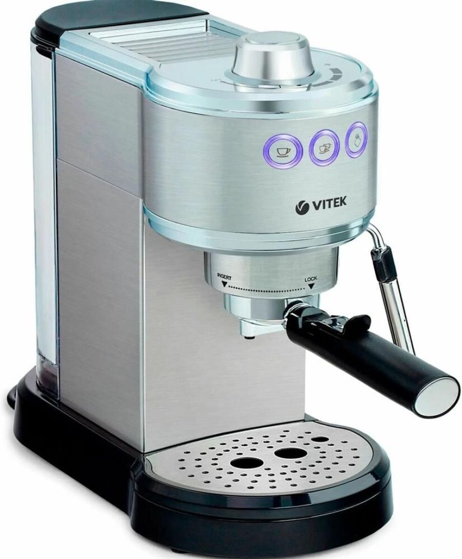 Кофеварка рожковая. Мощность: 1350 вт, Давление помпы: 15 бар, Съемный резервуар для воды: 1 литр, Капучинатор, Индикатор уровня воды, Индикация включения, Подогрев чашек, Подсветка, Приготовление капучино, Приготовление эспрессо, Съемный лоток для сбора капель, Материал корпуса: нержавеющая сталь/пластик, Особенности: Итальянская помпа фирмы Ulka; Кофеварка с термоблоком обеспечит безупречный вкус напитка, быстроту приготовления, уменьшить затраты на электроэнергию; Программирование объёма порции кофе, Тип используемого кофе: молотый, Цвет: Серебро