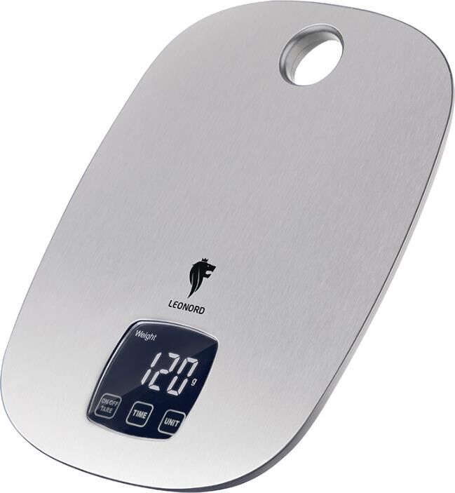 LCD дисплей Материал:металл Часы Максимальная нагрузка 5 кг Сенсорное управление Выбор единицы измерения: г/фунты/унции/мл Цена деления 1 грамм Функция "Тара" Прорезиненные ножки Петля для подвешивания Индикатор перегрузки и низкого заряда батареи Питание от батареек 2*AAA (входит в комплект) Напряжение 3В