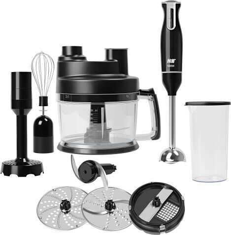 Номинальная потребляемая мощность: 550Вт Максимальная мощность: 1200 Вт 2 скоростных режима Функция«ТУРБО» (максимальное увеличение скорости) 9 основных функций: Приготовление пюре, нарезка кубиками, приготовление напитков, замешивание теста, взбивание, нарезка, шинковка, тёрка, измельчение КОМПЛЕКТАЦИЯ: Чаша для измельчения (объём 2,0 л) Нож для измельчения Мерный стакан для смешивания (объём 0,6 л) Насадка венчик Насадка блендер с 4-х лопастным ножом Насадка для нарезки кубиками Насадка для приготовления пюре Диск-тёрка для драников Двусторонний диск для терки и нарезки/шинковки Толкатель