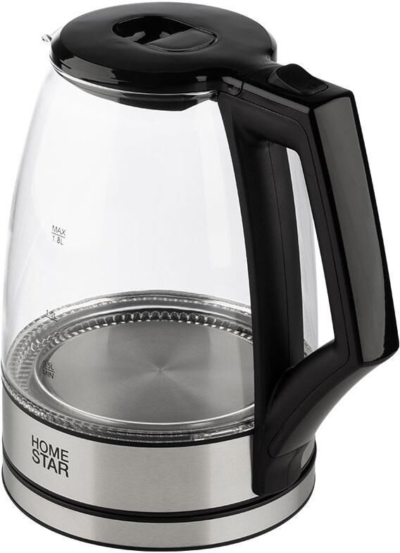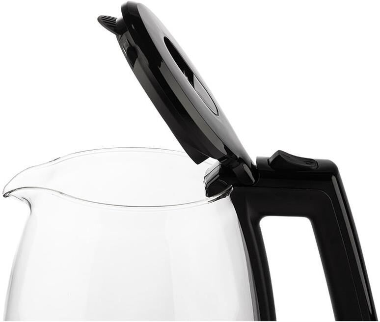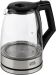 Объем 1,8 л Корпус из термостойкого боросиликатного стекла Шкала уровня воды Светодиодная внутренняя подсветка Закрытый нагревательный элемент из нержавеющей стали Поворот на подставке 360° Защита от работы без воды Автоматический выключатель Мощность 1850-2200 Вт Длина шнура 72 см