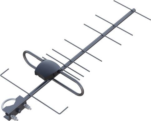 ТВ антенна диапазона ДМВ, Коэффициент усиления макс.12/35 дБи, 21-69 канал, питанием от цифровой приставки, волновое сопротивление 75 Ом, размеры в сборе (без узла крепления), мм: 605х255х80мм, масса 0,54 кг.