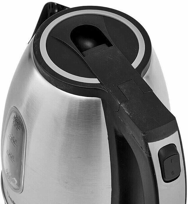 Параметры Объем 1,8 л Номинальная потребляемая мощность 1500 Вт Описание Чайник электрический предназначен для нагрева воды в бытовых и аналогичных условиях Корпус из высококачественной нержавеющей стали с декоративными цветными элементами Цвет: черный с серым Закрытый нагревательный элемент из нержавеющей стали Вращение корпуса на 360° Световой индикатор работы Шкала уровня воды Отсек для хранения шнура питания Автоматическое отключение при закипании Блокировка включения без воды Упаковка: цветная коробка