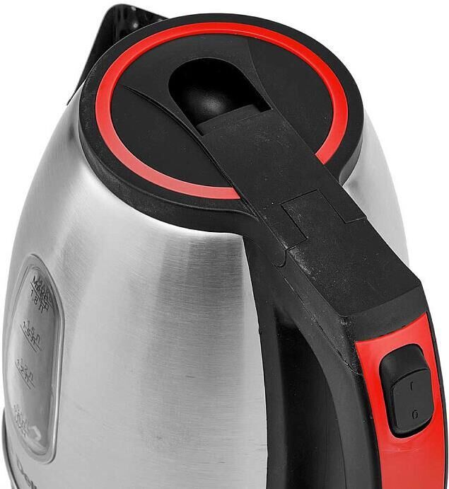 Параметры Объем 1,8 л Номинальная потребляемая мощность 1500 Вт Описание Чайник электрический предназначен для нагрева воды в бытовых и аналогичных условиях Корпус из высококачественной нержавеющей стали с декоративными цветными элементами Цвет: черный с красным Закрытый нагревательный элемент из нержавеющей стали Вращение корпуса на 360° Световой индикатор работы Шкала уровня воды Отсек для хранения шнура питания Автоматическое отключение при закипании Блокировка включения без воды Упаковка: цветная коробка