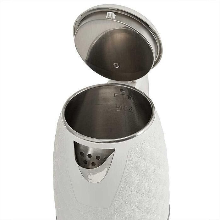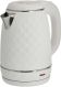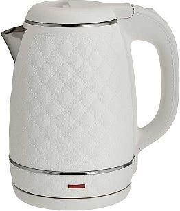 Параметры Объем 1,6 л Номинальная потребляемая мощность 1500 Вт Описание Чайник электрический предназначен для нагрева воды в бытовых и аналогичных условиях Двойной корпус: внутренний - из высококачественной нержавеющей стали; внешний корпус из пластика Цвет: белый Закрытый нагревательный элемент из нержавеющей стали Вращение корпуса на 360° Отметка максимального уровня воды внутри корпуса Световой индикатор работы Отсек для хранения электрошнура Автоматическое отключение при закипании Блокировка включения без воды Упаковка: цветная коробка