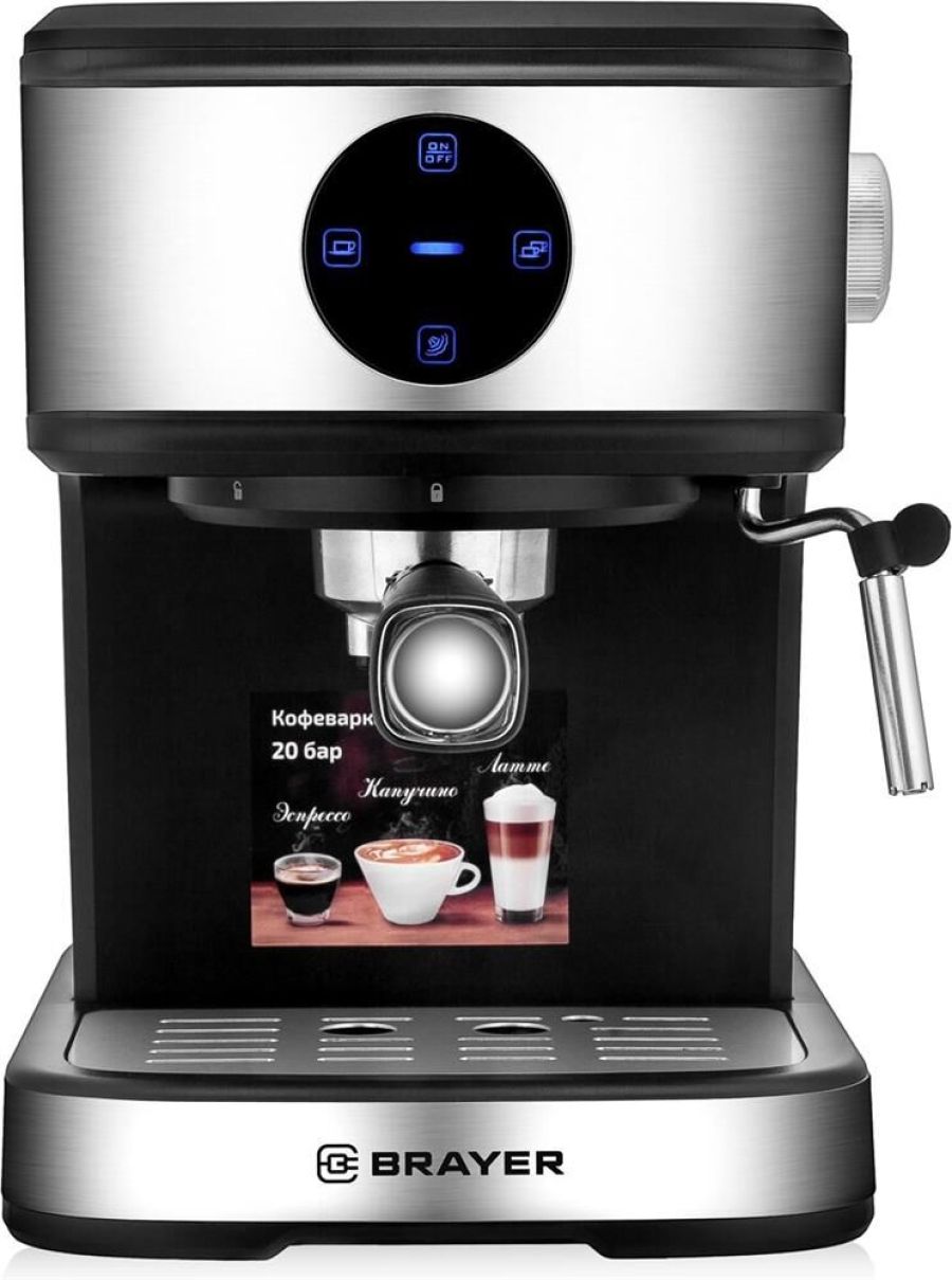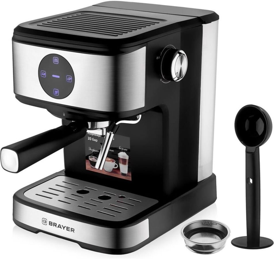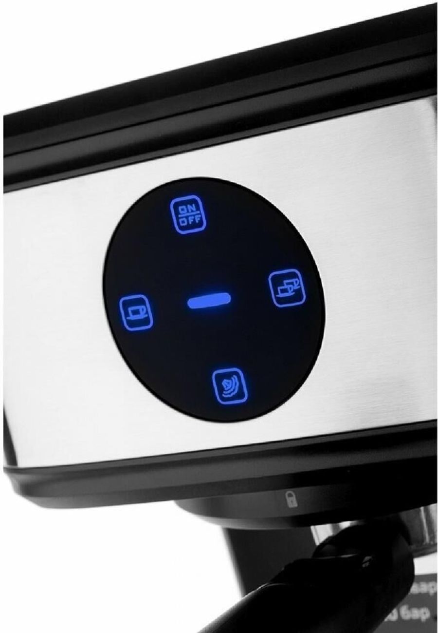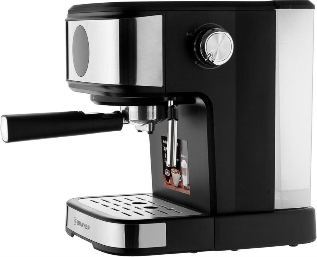 Кофеварка рожковая. Только молотый кофе, Мощность 800 Вт, Материал корпуса: Сталь/пластик, Питание от сети, Цвет: Черный, Капучинатор (ручной), Режимы: эспрессо, капучино.