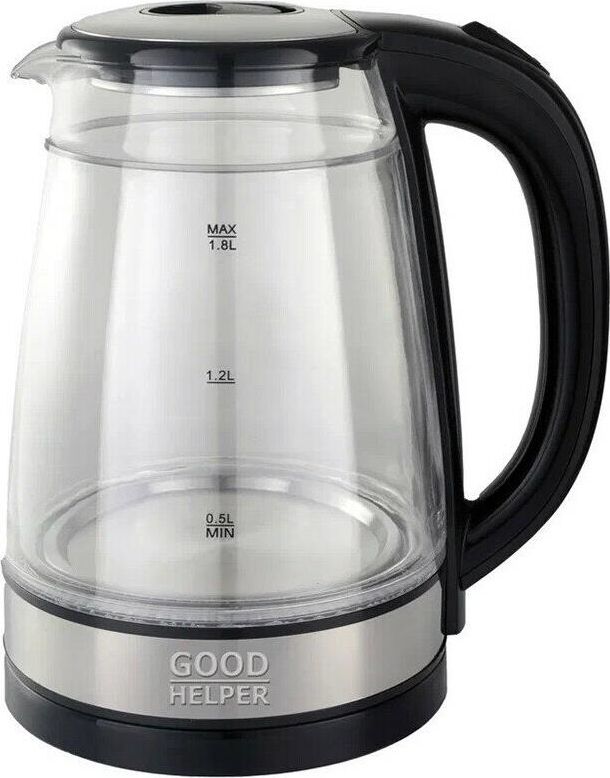 Двухстеночный стеклянный чайник; Автовыключение при закипании; Защита от включения без воды; Защита от перегрева; Поворачивающийся корпус (360°); Дисковый нагревательный элемент; прозрачный корпус с термоизоляцией; Внутреняя колба - боросиликатное стекло; Внешняя колба - деодорированный прозрачный пластик; Индикация включения; Металлическая защита крышки; Объем 1.8л; Мощность 1500Вт.; Рабочее напряжение 220В * 50Гц.