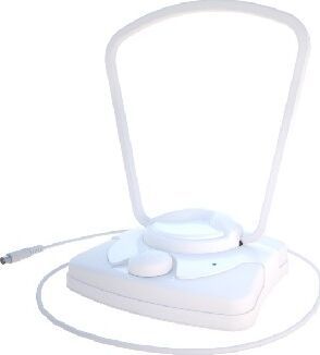 Антенна комнатная, активная, диапазон ДМВ, расстояние до телепередатчика, не более, км: 10, коэффициент усиления, макс., дБи, 21-69 канал: 32, напряжение питания, В: 5, волновое сопротивление, Ом: 75, малошумящий усилитель, со встроенным фильтром, для предотвращения помех, питание - от цифрового ресивера, длина кабеля, м: 2