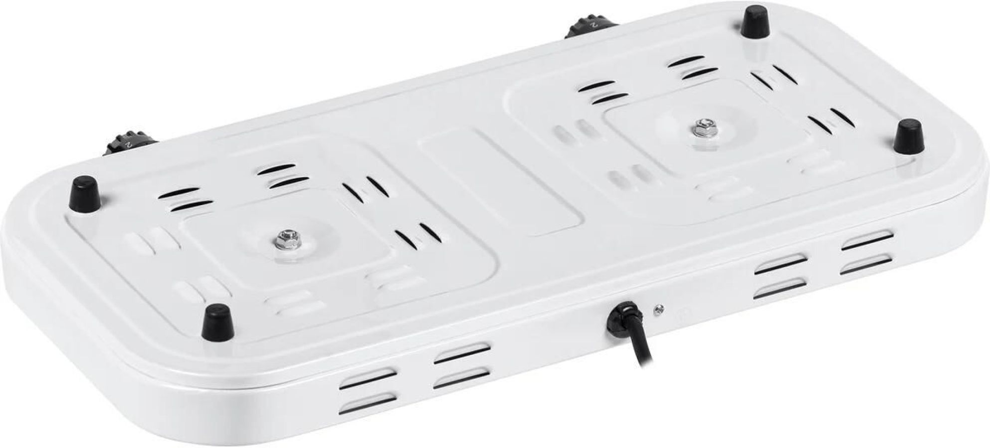 Тип компактная электрическая Общее количество конфорок 2 Диаметр конфорок (мм) 185+154 Тип управления поворотный механизм Управление нагревом плавное Количество уровней мощности 5 Мощность (Вт) 1500 Мощность каждой конфорки (Вт) 1500+1000 Прорезиненные ножки Да Длина шнура (см) 100 Размеры устройства Ширина (мм) 496 Высота (мм) 66 Глубина (мм) 341 Вес (нетто) (кг) 3.02 Материал конфорок чугун Материал покрытия панели эмаль Материал корпуса металл