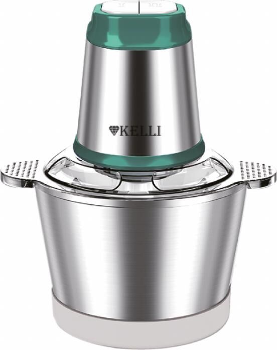 Чоппер-измельчитель Мощность: 1200Вт Чаша из нержавеющей стали объемом: 1,8л Материал корпуса: пластик и нержавеющая сталь Двухъярусный нож с 4-мя лезвиями Ножи из нержавеющей стали 2 скоростных режима Противоскользящее основание Механическое управление Сеть: 220-240В, 50Гц