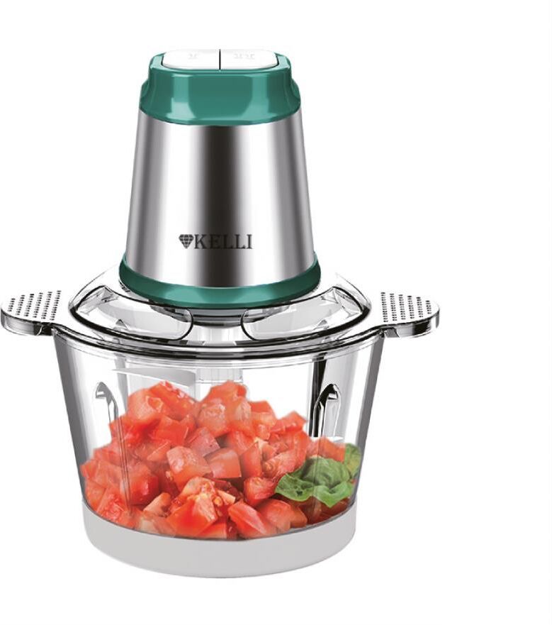 Чоппер-измельчитель Мощность: 1200Вт Стеклянная чаша объемом: 1,8л Материал корпуса: пластик и нержавеющая сталь Двухъярусный нож с 4-мя лезвиями Ножи из нержавеющей стали 2 скоростных режима Противоскользящее основание Механическое управление Сеть: 220-240В, 50Гц