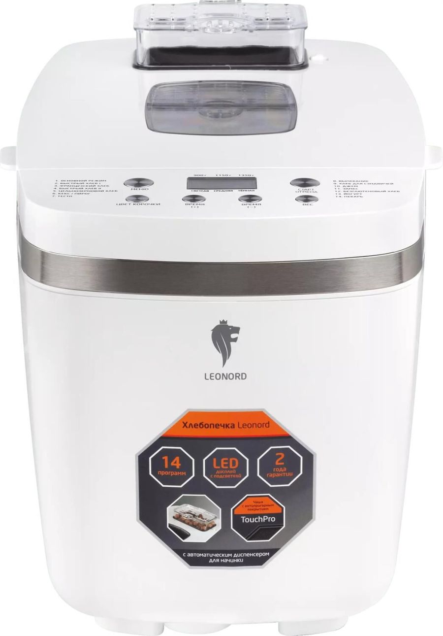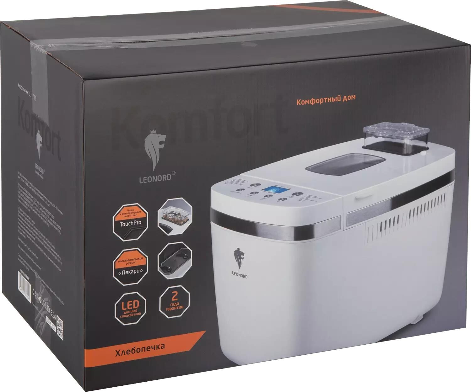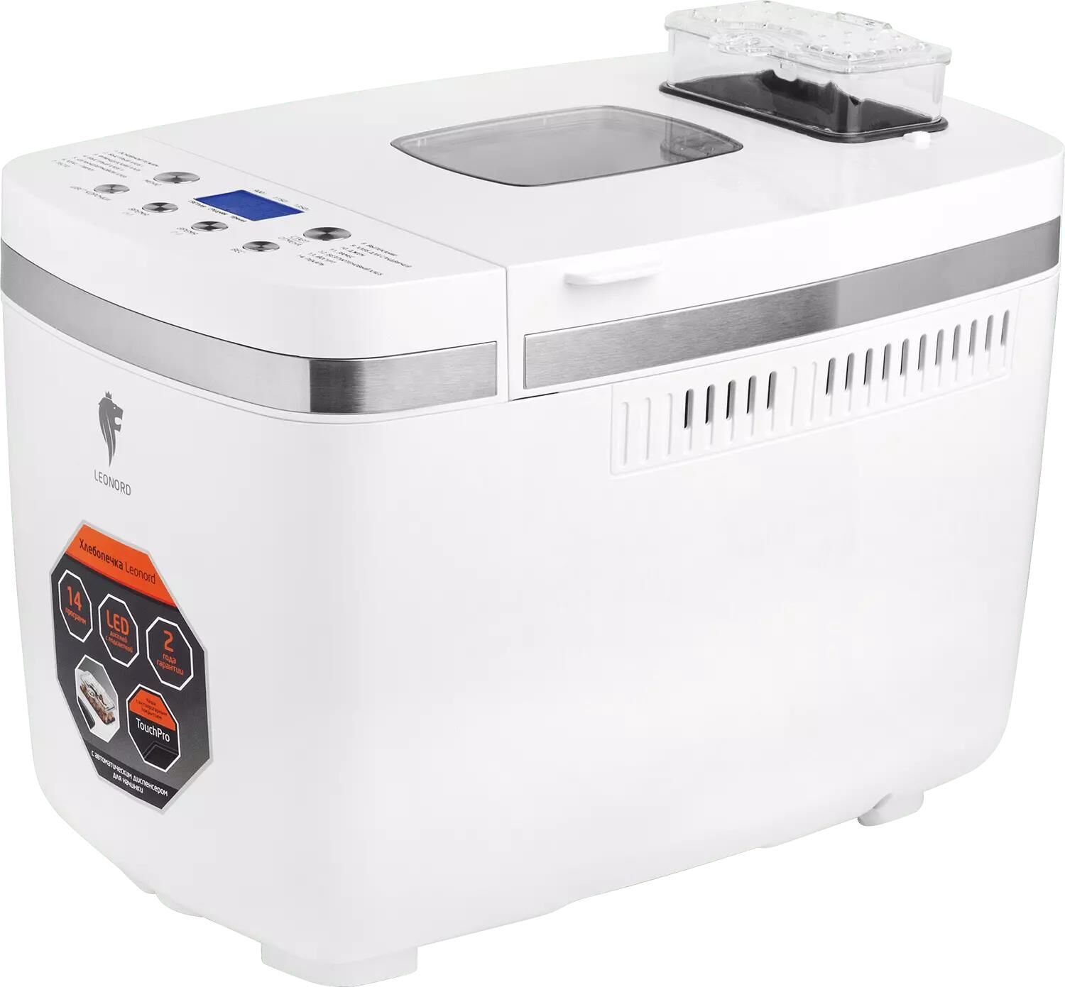 Мощность 850 Вт Размер буханки 900/1150/ 1350 г 14 программ приготовления: 1. БЕЛЫЙ ХЛЕБ 2. БЫСТРЫЙ 3. ФРАНЦУЗСКИЙ ХЛЕБ 4. СВЕРХБЫСТРЫЙ 5. ЦЕЛЬНОЗЕРНОВОЙ 6. ПИРОГ 7. ТЕСТО 8. ВЫПЕЧКА 9. СЛАДКИЙ ХЛЕБ 10. ДЖЕМ 11. СМЕШИВАНИЕ/ПЕРЕМЕШИВАНИЕ 12. БЕЗ ГЛЮТЕНА 13. ЙОГУРТ 14. ПОЛЬЗОВАТЕЛЬСКИЙ 3 варианта корочки: светлая, средняя, темная 13-часовой таймер отсрочки старта Функция памяти 10 минут Автоматическое поддержание температуры в течение 1 часа 2 тестомешателя Контейнер для добавления ингредиентов 220-240 В, 50-60 Гц