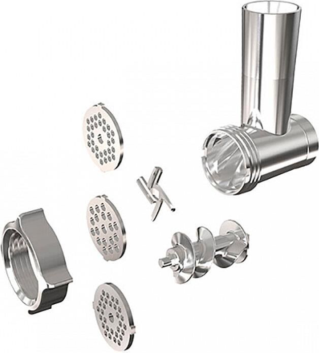 Мощность:2100 Вт/Производителность:2кг/мин/ Реверс/ Перфорированные диски/ Диски с диаметром отверстий 3, 5 и 7 мм для приготовления фарша/ Нож из нержавеющей стали/ самозатачивающийся нож продлевает срок службы прибора/ Ручка для переноски /Удобное перемещение прибора/ Отсек для хранения/ Практичное место для хранения дисков