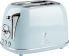 Серия RETRO Мощность: 685-815 Вт 2 широких слота для хлеба 120*120*38мм 6 степеней прожарки Автоматический подъем готового хлеба Поддон для крошек Функция центрирования Функция разморозки Функция разогрева Кнопка отмены выбранного режима LED подсветка кнопок Гарантия 2 года Цвет: голубой